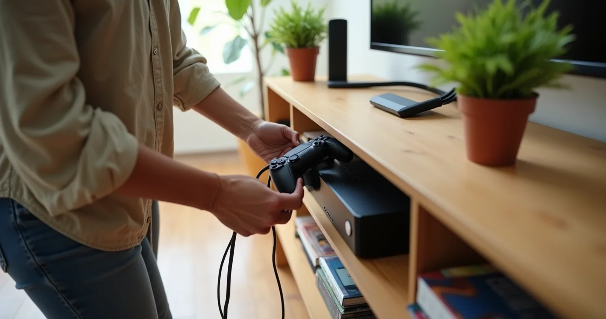 Quando você deixa cabos soltos e controles espalhados, todo o esforço decorativo perde impacto. A verdade é a seguinte: eletrônicos mal organizados criam uma sensação de desordem que nenhum objeto decorativo consegue compensar.