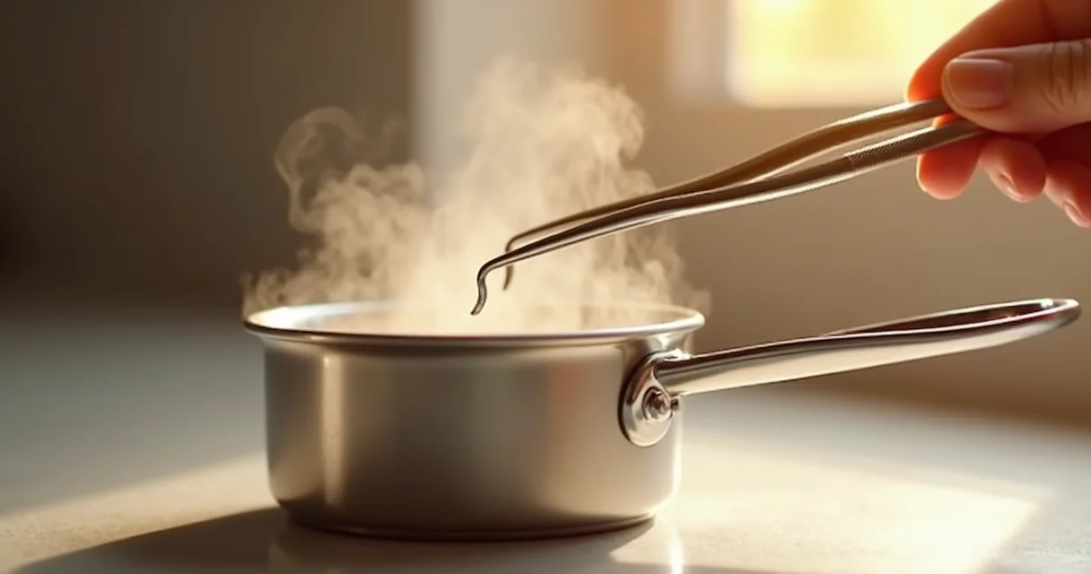 - Hora da fervura: Assim que a água estiver borbulhando, com cuidado, mergulhe a pinça. Deixe ela ali, cozinhando em banho-maria improvisado, por pelo menos 15 a 20 minutos. Esse tempo é crucial para garantir que o calor ajude a eliminar os microrganismos.